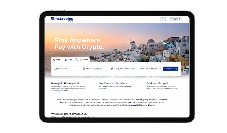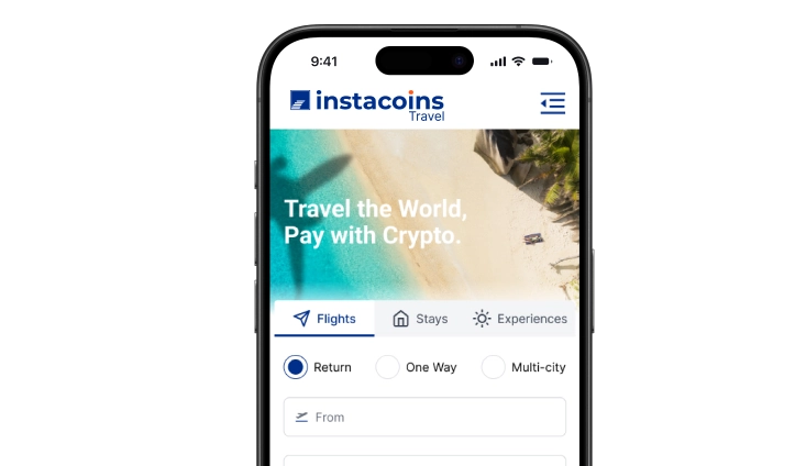 Browse flights, stays or experiences through the Instacoins travel platform.